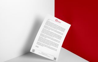 • Hlavičkové papíry si přál klient vytvořit v několika barevných provedeních s brandingovým paternem v pozadí a QR kódy v patičce